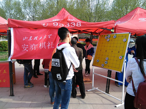 4月10日下午,在公司60周年校庆之际,公司安弈棋社在稷下湖畔开展宣传活动。安弈棋社社长许洁及众社员参与了此次宣传活动。此次宣传活动旨在提高安弈棋社在全校范围内的影响力,形成安弈棋社的品牌力量,为今后安弈棋社活动的开展打下良好的基础。