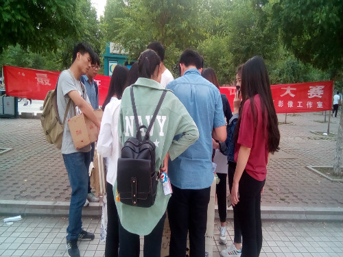 下午五点十分左右,DV摄影联盟众干事到达第三餐厅并有条不紊地开始进行准备工作。大家分工合作,整理桌椅、张挂条幅、粘贴海报,一切准备就绪后,下午五点半左右,宣传活动正式开始。干事们通过热情的呐喊声吸引了不少同学驻足询问,并被海报中积极向上的照片所打动。照片记录的都是班级参加活动的美丽瞬间,看到这些照片,同学们的眼眸中流露出感动与欣赏,纷纷表示想参加此次大赛。经协会干事们的热情讲解,同学们了解到此次大赛是通过邮箱投稿的方式来进行参与,很多同学拍照记下了邮箱号。协会干事们的脸上也洋溢着春光般明媚的笑容。随着餐厅前人员的减少,宣传活动也在不知不觉中结束。