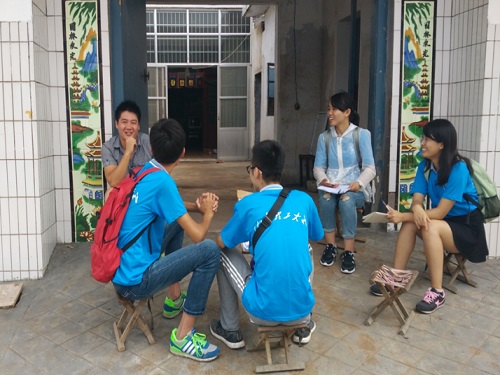 天气炎热,队员们大汗淋漓,但是浇不灭实践队员们的热情;艳阳高照,但实践队员们依然跑步前进;道路泥泞,队员们团队协作、牵手同行。在当地村民的带领下,队员们经过半小时的步行来到陵坡村,并在在村石前拍照留念。随后实践团共分为两个小组,第一组在村民的带领下从北向南开始,入户进行民情调研;第二组从中心街开始向南进行走访。队员们秉持着自愿访问的原则进行走访,主要面对对象是村中的青壮年,其中一队在走访过程中遇到了一名厦门大学毕业研究生。在与其交流过程中得知,此次回来他是希望能够留在家乡发展,带动家乡产业。其做过电商方面的研究,也曾经在中国农资网进行过注册运营,但是由于规模较小、资金短缺以及村民思想等问题最终导致失败。但是另一方面显示,现在的农产品销路单一,而且受到商户的牵制,很多西红柿、芸豆、辣椒等保存期短、较难长途运输、切成熟期集中的蔬菜因收购价格低导致货物囤积。仅2015年一年就有十几亩辣椒因为没有销路而被倒掉,种植户损失很多。其次,目前村民对互联网、手机购物等网络产物了解甚少,所以对村民的电商普及显得尤为重要。