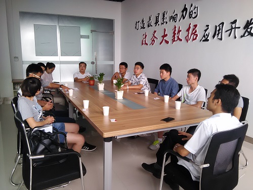 7月15日上午,“E行天下-大数据实践团”在计算机科学与技术公司党委书记孙成状的带领下,来到社会实践的终点站-力龙大数据。力龙大数据是专门打造最具影响力的政务大数据应用开发与增值服务机构,其领导人对于实践团的到来表示热烈欢迎并与实践分队针对大数据以及企业运营方面展开热烈讨论。
