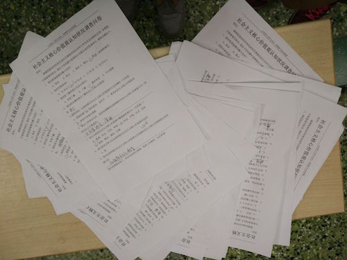 “山东行·青春梦”实践团实践主题是调研社会民众对社会主义核心价值的认同状况,实践团队员在进行了两天的淄博市博物馆社区的实地考察调研后,搜集了大量的、真实的调查访问笔记和调查问卷数据资料。按照实践团原定计划,于本日开展调研结果分析和研讨活动。本日上午九时开始,实践团全体队员在三号教学楼集合,队员们共分成两个小组,小组一整理调查问卷,小组二对访问所得的口头资料进行整理。整理结后,本日下午三点开始,队员们开展激烈的讨论活动,队员根据上午的资料结果提出了“影响社会主义核心价值观传播的因素”和“人民在日常生活中如何践行社会主义核心价值观”等问题,并针对这两个问题进行发散讨论。小组成员们各抒己见,场面十分火爆,成员们以饱满的热情和认真的态度投入本次活动。
