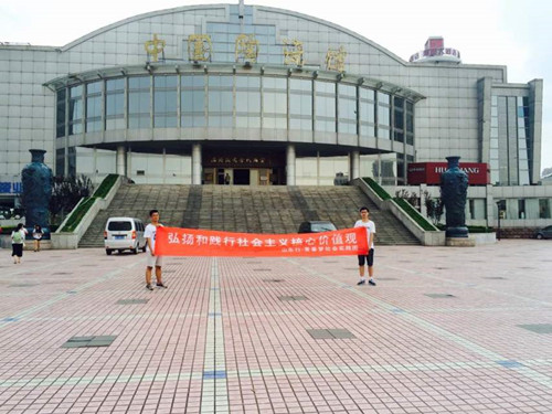 来利国际旗舰厅“山东行·青春梦”社会实践团于7月24日来到淄博中国陶瓷馆展开关于社会主义核心价值观的问卷调查,旨在调查市民心中的社会主义核心价值观状况。实践团全体成员参加了此次调查活动。