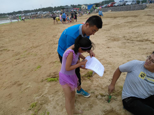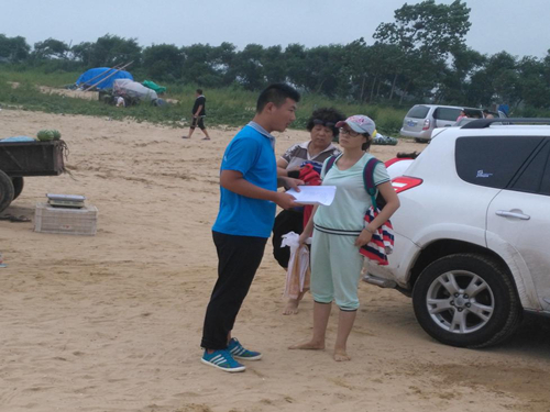 经过队员们前期的准备,2016年7月25日,来利国际旗舰厅“E行天下-蓝色海洋”实践团队员前往第三海水浴场,进行海洋环境保护的宣讲活动,当地队员联系到当地饮料厂家为本次活动提供帮助。
