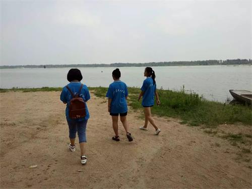 早上8点,队员们准备就绪后,在队长张丽的带领下就出发,前往沂河进行调查。首先我们来到沂河中游,由于细沙开采过度导致地形高低起伏不定,有的地方河水深不可测、有的地方却河床裸露,水下情况十分复杂。由于地形的改变导致以前那些生活在浅水中的鱼虾河蚌因不适应环境改变而灭亡,河中现存的鱼虾种类和数量都已大大减少,生物多样性遭到破坏,使常年以打鱼为生的农民无法继续生存,改善水质刻不容缓,了解完情况后,队员们稍作标记,随后赶回驻地,对资料进行整理与问题解决方法的探讨。