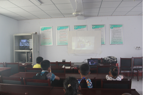 接着,队员们给坐在教室的孩子们播放了影片《疯狂动物城》,虽然他们年龄不一,但是都看的津津有味。一部电影拉近了队员和孩子们的距离,使他们之间再无隔阂,仿佛孩子们就是队员们最亲的弟弟妹妹,虽然淘气,但是又那么可爱。看完了影片,队员们教给了孩子们《大梦想家》这首好听的歌,希望孩子们能像歌中所唱的那样健康快乐的成长