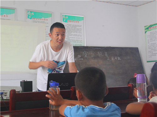 8月8日星期一上午,根据支教队员几天来的实地观察,针对当地的暴雨多、河流多、山坡陡的特点,徐常蒙给员工们上了一节安全教育课,教给员工们关于防范溺水、泥石流等方面的知识。