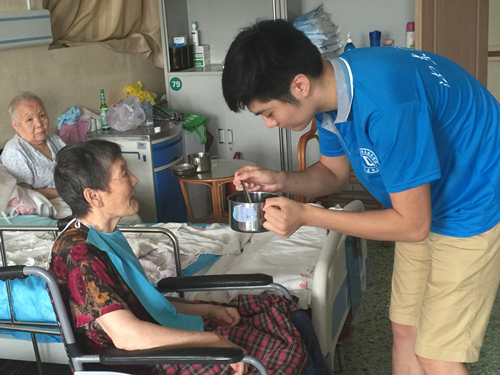 实践队员们和护士长交流得知,护理照顾失能老人不仅需要专业知识,还需要耐心和视老人如亲人的感情,确保每个老人每天饮用800ml的水。有的老人三天没有大便,他们就采取一定的医疗手段人工排便,帮助老人解决生理痛苦。8月11号队员们又参观了医院的食堂,食堂的饭菜都是根据老人的营养需要合理搭配,由护士盛好饭后端入病房,方便了老人,令老人的子女也很放心。这几天的社会实践,让实践团队员们对“以医养老”的新模式有了很多的了解。在于老人们相处的时间里,感动的同时队员们也成长很多,收获颇丰。