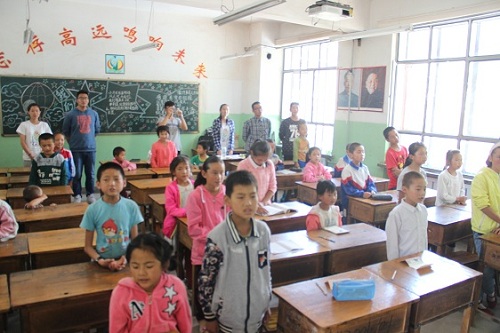 下午,队员们跟孩子们举行了开学典礼。活动伊始,队员们邀请小学董事长铁更登进行讲话,首先董事长对队员们的到来表达了感激,并要求孩子们努力学习知识,听老师的话。接着,孩子们表演了《再见》、《小苹果》等节目,将活动的氛围推向了高潮。为保证孩子们的人身安全,由孙宝林老师给大家上了一节安全知识普及课,教育孩子们如何应对突发事件,在师生之间的互动中,孩子们踊跃发言,提出了很多有用的提案,他们的声音虽然幼稚,但是依然可以看出他们在面对危险时的自我保护意识很强。接着,在队员们的组织带领下,孩子们投票选举出了班长,学习委员等职务,希望年龄大的孩子可以带动年龄小的孩子的学习热情。