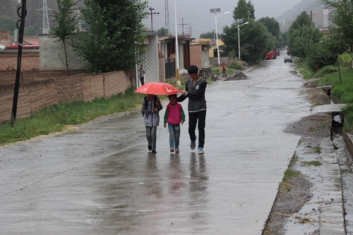 8月15日清晨,队员们早早的起床来到校园门口迎接孩子们的到来,此时天空正下着大雨,队员们有些担心孩子们的出行安全。