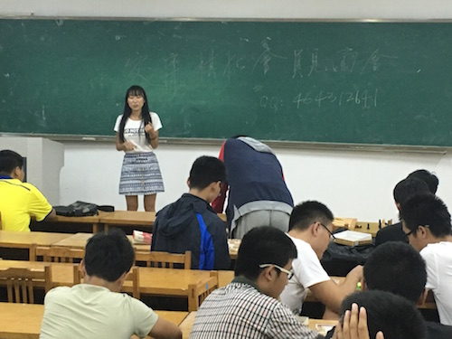 见面会伊始,社长许洁认真详细的向大家介绍了棋社的规章制度以及棋社的日常安排,在接下来的十多分钟里许洁阐述了棋社成立的历史和发展历程,让大家对棋社有了更加深刻的认识,介绍并宣扬棋社的文化、精神。棋社秉承着“有容乃大”的宗旨和广阔的胸怀欢迎2016级的新成员,在介绍的过程中,新成员们也相互了解,加深了对彼此的认识,促进情感上的交流。