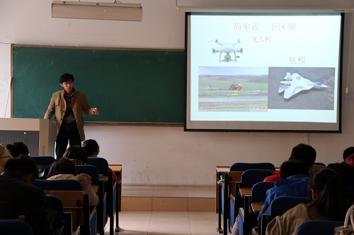 齐飞向同学讲述了自己创业以来研究开发制造航模这条道路的种种故事与从中获得的众多经验。他的创业历程艰辛但是因为对航模的热爱而让他感到快乐,他的创业故事更是激励了众多有着创业梦的老员工们。他还建议同学们在大学期间多参加员工组织与社团活动、锻炼创新与动手操作实践能力,紧接着他补充每个人找到自己适合的路才是最好的。说起在后来的创业工作中大学同窗的合作与信任感,董诗阳和朱贺都真挚地表达了对在座同学们珍惜大学同窗情谊的期许。他们的创业经历使同学们受益匪浅,讲座在观看航模比赛视频的激情中圆满结束。