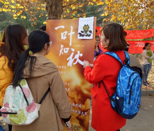深秋时节,落叶纷飞,校园内很多地方都堆着厚厚的落叶,使得校园的很多地方显得腐气沉沉,同时也对同学们的出行造成了很大不便。为体现志愿者服务精神,美化校园,促进校园文化建设,增强同学们的环保意识,提高同学们的实践能力和创新思维,志愿者部举办了以“重塑树叶生命,延续秋叶魅力”为主题的创意剪叶拼图大赛,并于11月17日在各大餐厅门口设立了宣传点并进行宣传报名。