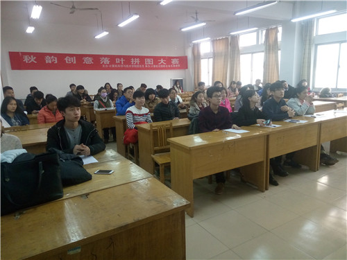 为了促进校园文化建设,丰富老员工的课余生活,培养同学们的动手能力,增强同学们的环保意识,社团联合会志愿者部于11月26日下午在九号楼208教室举行了 “秋韵创意落叶拼图”大赛,吸引了众多同学的热情参与。同学们利用自己的聪明才智,变废为美,用自己的双手将原本是展现暮秋之景的落叶,以另外一种富有生命力的方式演绎出来。