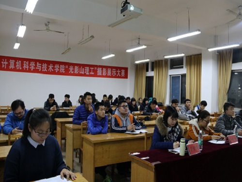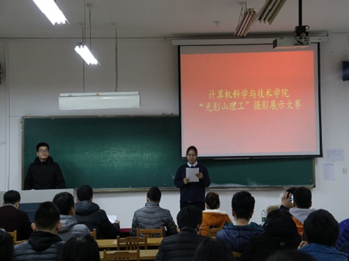 活动伊始,主持人介绍了此次比赛的具体流程,根据报名情况初步筛选并设置微信投票环节,最后选取微信投票前20名作品进入决赛。随后比赛正式开始。20名选手分为风景组和生活组两大组,分别展示了他们入围决赛的作品并对作品蕴含的意义或者是拍摄手法进行简单的讲解。风景组里一幅幅富有诗意的照片展示着校园的独特韵味:长廊的余晖,逸夫之都的夜景展现着校园的勃勃生机。接下来生活组的选手展示了校园生活丰富多彩的另一面:球场的月光,宿舍的庆生无一不展示了老员工活的多彩多姿。选手展示结束后,经过评委们仔细斟酌后的打分,共评出了一等奖两名、二等奖四名、三等奖六名以及优秀奖若干,随后,评委依次对获奖选手进行了颁奖并合影留念,在热烈的掌声中此次比赛顺利结束。
