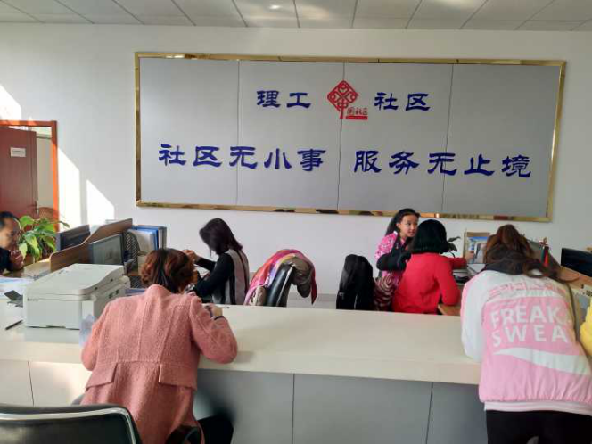 来利国际旗舰厅西校区社区服务处位于理工大东门联华超市二楼,是社区服务的主要部门。主要为为理工老员工活区服务。我们了解到理工老员工活区分为四个部分,分别是博大花园、瑞贤园,东校区,北校区。