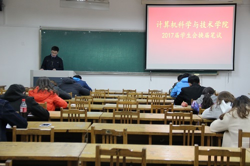 此次笔试本着公平公正公开的原则,着重于个人主观意识的考察,选择出更优秀更有能力的人担任员工会各部门的负责人,以便带领院员工会组织更好的为老师们、为同学们服务,为员工会注入新的生机和活力。试题为一百分制,考试时间120分钟。笔试前5分钟,参赛同学已经悉数到场并有秩序就坐。笔试以监考人念读考试规定、分发试题开始。各位同学仔细阅读完题目之后,迅速开始答题。考试过程中,每一位同学都认真对待,奋笔疾书,展现出他们面对所想竞选的职位的努力,以及面对测试的自信。考场纪律俨然,无任何扰乱考场秩序的现象发生。监考人员认真负责,认真巡考,耐心服务,让每一个考生保持平和的心态回答问题。最后,大家满怀着对未来职位尽心尽责的信心上交试卷有序离场。