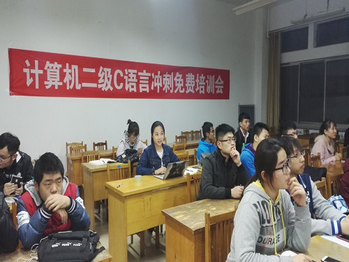 3月23日晚,计算机协会在九教210教室举行了计算机二级C语言冲刺免费培训会,此次活动由执教多年,经验丰富的巨老师主讲。计算机协会会长携骨干以及会员共同参加。活动开始前,计算机协会全体成员进行了为期3天的宣传,在各个餐厅门口都可以看到他们的身影,公司同学也踊跃报名。