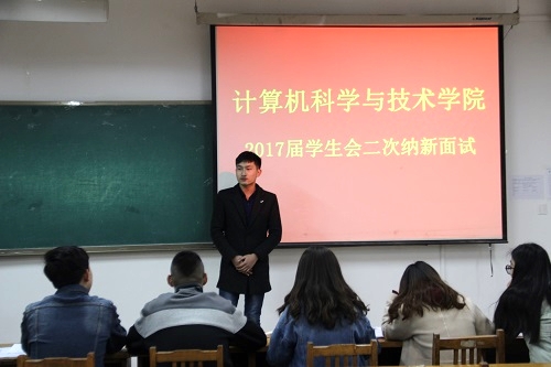 面试过程分为脱稿演讲和问题答辩两个环节。首先由各位竞选同学进行自我介绍,向大家展示自身优势、对所竞选部门的认知以及部门今后的简略规划和具体做法,并说明了加入员工会的初衷。自我介绍结束后,评委提出针对性问题,以此考察竞选者处理各类问题的能力以及是否具有该部门工作所需能力。竞选者以灵活独特的方式回答评委问题,简述自己的工作规划及工作职责,尽最大努力展示自己,以期望能够进入员工会队伍,锻炼自己,展现自己的才能,为同学们服务。各位评委本着公平、公正、公开的原则,以严肃认真的态度考量各位竞选同学,希望给各位竞选同学以施展自己才能的空间,做好每一项工作。