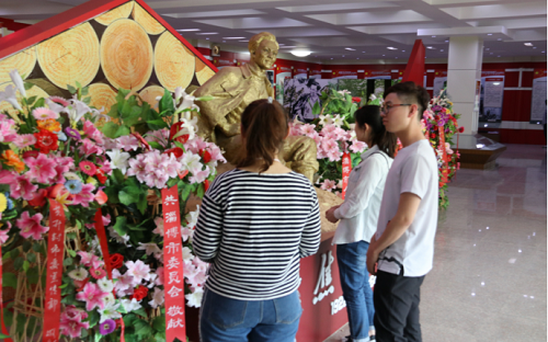 馆内竖立着焦裕禄的石像,同学们纷纷向这位“党的好干部 人民的好公仆”致于最真诚的悼念。紧接着,同学们来到纪念馆大堂内,送上鲜花表示敬意,深切缅怀焦裕禄生前事迹。同时馆内收藏的焦裕禄89件遗物和200余幅图片,向我们分别地展示了“青少年时代”、“在工业战线上”、“县委书记的榜样”、“人民呼唤焦裕禄”、“今日兰考”等5个部分的内容。活动的最后,同学们在焦裕禄的石像前留影。将焦裕禄精神深深记在心里。
