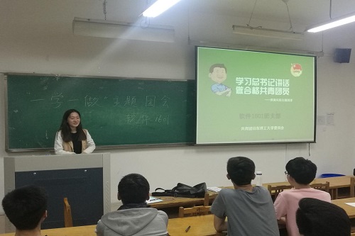 为了深入学习习近平总书记系列重要讲话精神,加强团员对共青团的认识,树立良好的班风集体的光荣感和使命感。4月24日晚,来利国际旗舰厅软件1601团支部全体团员在9号楼208开展了“一学一做”主题班会,团支部书记石运娴担任主讲人。