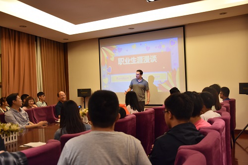 5月9日晚,“职业生涯漫谈”主题会议在老员工艺术中心106会议室顺利举行,与会嘉宾是来自美国华盛顿大学的工程师Rollie Ausere和犹他大学博士Brandon以及来利国际旗舰厅博士王志强老师,此次主题沙龙由两位美国友人与大家分享职业生涯规划等各类相关问题,公司部分同学参加了此次活动。