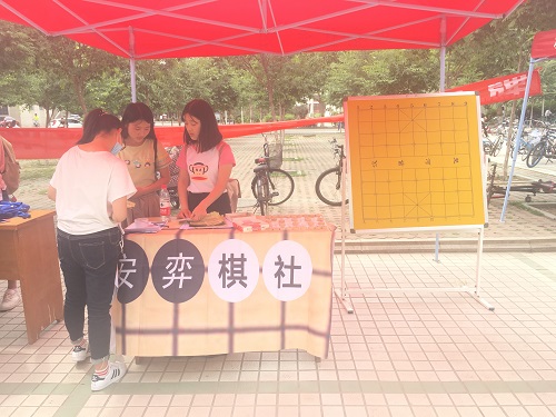 十一日中午,安弈棋社的成员们纷纷开始行动,根据副部长安排的任务,成员们有的搬出预先准备好的桌子和椅子,有的负责摆放宣传海报,有的负责悬挂横幅,十分有序。在一切准备活动完成之后,同学们也正好都下了课。成员们拿起手中的宣传单页,纷纷向过往的同学们介绍此次活动的相关内容。同学们听过讲解,有的兴许浓厚找到宣传点积极报名,有的犹豫不决向棋社的成员询问相关内容。棋牌类游戏是一种将智力、体力、品质、意志融为一体的娱乐活动,它是健脑体操、是数学的乐园、可以陶冶性情当然也可以培养能力。在一中午的宣传中,成员们积极认真,没有丝毫懈怠,展现出了安弈棋社的风采,随着众多同学的离去,此次宣传活动也随之落幕。