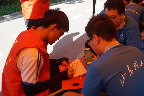 两点四十五分,考场入口关闭,考生们此时已经坐在考场中准备答卷了,悦耳的哨声和听力试音的回响似乎在宣布这场无声的战争即将开始。考场外的家长此时也很焦急。计科1601团支部的同学主动跟家长聊天,让他们放宽心,相信孩子。不少家长向同学问起了关于高考报志愿的事情和老员工活的事情,计科1601团支部的同学也很热情的分享了一些自己的经验。太阳在下午变得更加耀眼,许多家长也到了计科1601团支部事先设置的休息点避暑,领取矿泉水。