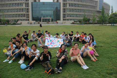 该活动分为五个小游戏,分别为“你比我猜”、“倒水传递”、“吸管传物”、“六人七足”和“团体跳绳”。同学们在被分为红橙蓝绿四个队伍之后,展开了激烈的竞争和比拼。期间,同学们搞笑夸张的表演引来了阵阵笑声,“暧昧遮掩”的动作引发了阵阵唏嘘,那为了队伍胜利而付出的努力引起了阵阵掌声。此次活动最终以蓝队第一,红队第二,绿队第三,橙队第四的成绩收尾。之后大家在活动海报上印上自己的手印,又分别在图书馆后、在草地上拍照留念。