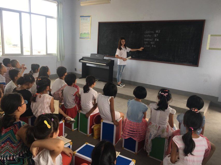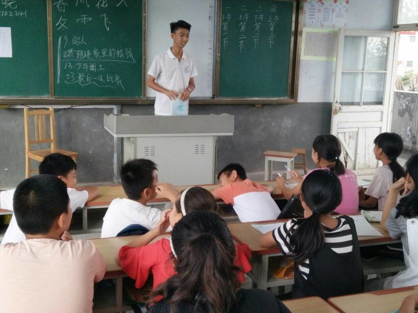 中午,实践团成员孙清、丁瑶瑶对三年级、五年级的英语课程进行了辅导。三年级班级上课伊始,孙清对自己的基本情况进行了介绍,对自己的姓名、公司、专业、爱好、特长等和同学们一一分享。紧接着,同学们开始按照顺序对自己进行介绍。之后,孙清根据同学们的所学课程对课程安排进行了详细记录。然后,孙清开始对四年级英语第一单元的英语单词进行了介绍,并且教同学们如何发音以及书写。丁瑶瑶对五年级的暑假作业进行了辅导,并且对疑难问题进行了解答。