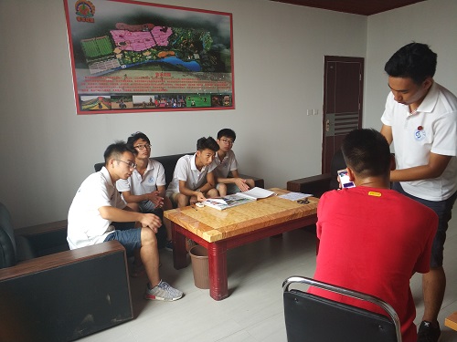 7月25日上午,E行天下—赴三井村实践团部分成员,再次前往郯城县三井社区鲁冰花园,与鲁冰花园经理魏勇反馈前期调研成果并且交流发展意见。