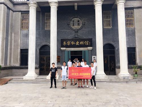 中午,调研团全体成员顺利抵达枣庄市台儿庄,调研团成员根据原定计划首先参观了铁道游击队纪念馆,在参观途中调研团成员向周围居民打听住在附近的老共产党员,并成功找到一位在当地德高望重的老一辈共产党员。调研团成员详细的请教了他关于台儿庄战争的情况,老爷爷怀着激动心情生动向我们讲述了当时战争的激烈。讲述完成调研团成员以拥抱的方式同老爷爷告别。拜访完老先生后,调研团成员乘车到达台儿庄大战纪念馆,相信老一辈共产党员对台儿庄大战有着刻骨铭心的记忆,此战役在李宗仁将军的指挥下沉重的打击了日本帝国主义的嚣张气焰。纪念馆让我们更加了解战争发生的背景。最后,调研团成员抵达李宗仁将军纪念馆,对李宗仁将军的生平做了深刻的了解,深深的体会到李宗仁将军舍小家为大家的爱国主义精神。在结束前,调研团成员在李宗仁将军纪念馆门口进行了合影,表达了对将军的敬佩之情。
