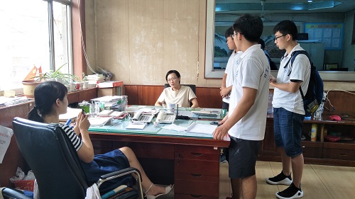 正式走访前,实践队的成员们通过网上搜索、当地果农的反馈等渠道,再结合前几日的实地考察,整理出较为完整的采访文稿。两个采访日里,两位负责人按照采访问题的顺序,分别为同学们解决了疑难问题。农业局的负责人先详细介绍了近几年的农业政策和相关惠农政策,再着重讲解了当地的基地品牌——蒙阴蜜桃。随后,又谈到了当地为了加强农业执法力度所施行的几项重要举措。除此之外,实践队员们还额外地了解到了其它的一些知识,如蒙阴县的沼气管理办法、“三品一标”认证程序、蒙阴县当地的农业生态环保工作等。水利局的相关负责人则主要通过对近几年降水量的多少及变化进行分析,并结合对应年份水果产量的增减,来说明降水量对于当地果业生产发展的重要性。又简单的介绍了近几年的水利项目、工程及其所获得的荣誉等。两天的采访结束后,同学们在实践队长的组织下,对近几日走访所获得的信息进行归类整理。