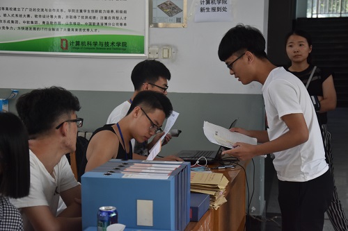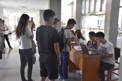 骄阳似火挡不住新生入学的热情,前来迎新工作点报道的同学们个个神采飞扬,精神抖擞,脸上洋溢着青春的笑容。新生到达迎新工作点后,由工作人员登记,收取准考证、录取通知书,验证报到表,填写公寓入住表,盖章,发放校园卡,工作人员分工合作,各项工作有条不紊的进行,保证了迎新工作点的良好秩序,提高了工作效率。公寓楼内的迎新点工作人员为新生带路,搬运行李,保证新生顺利入住。新生同学向工作人员询问疑惑问题,包括校园卡的使用方法、住宿、上课时间等问题,家长们就自己不明白的地方提问,工作人员们热情答疑,仔细耐心,从分体现了作为学长学姐积极热情的服务态度。与此同时,9号教学楼大厅内还设立家长休息处,缓解家长到达公司的舟车劳顿,也进一步提高了新生入学办理手续的独立能力。