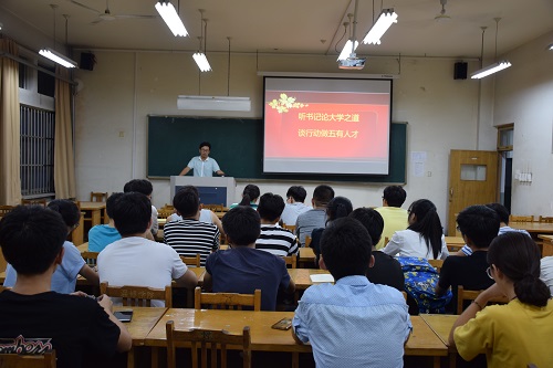 9月24号晚上,2016级主要员工干部在九号教学楼110教室举办以“听书记论大学之道,谈行动做五有人才”为主题的员工干部学习会,学习会由16级辅导员刘明卿主持。