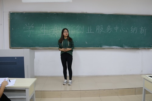 此次纳新会之前,同学们踊跃报名,到场参加面试的同学挤满了两个教室。会议伊始,主任张洁介绍了一下老员工创新创业服务中心的职能,让各位到场参与纳新的同学对自己的部门有了进一步的认识。接下来,由各个部门的副部长,对各位参加面试的同学进行面试。同学们登台演讲,言辞中充满了对未来工作的热情,展示了他们对创新创业事业的无限向往。