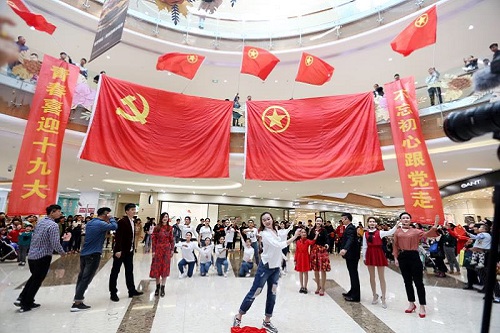 “青春喜迎十九大,不忘初心跟党走”青春快闪活动在万象汇一楼中厅举行。活动由共青团张店区委主办,公司计算机学院与音乐公司部分同学参加活动。