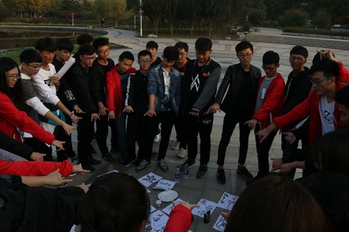 活动开始,全体团员在稷下湖集合准备户外素质拓展活动的开始。此次户外拓展活动围绕五有青年主题展开进行了寻寻觅觅、圈圈圆圆圈圈、你划我猜、书圣降临四个活动。