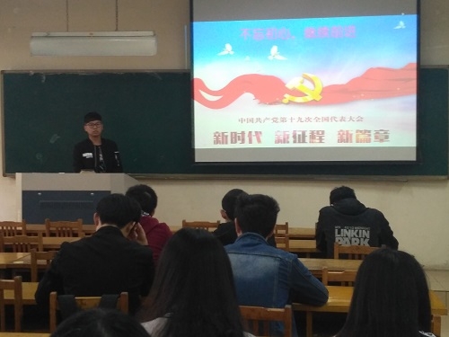10月22日下午,计科1601团支部于九号教学楼110室进行了“不忘初心,继续前进”主题班会,团支部成员深刻学习十九大最新指导思想内核,团支部书记刘鸿飞为大家讲解了关于十九大的一些相关信息,并谈了自己对于此次十九大的看法。团支部副书记尹永恒,同学代表史顺晓,就公司党总支书记吕传毅号召大家做“五有青年”与大家进行了探讨,同学们积极发表自己的意见,记录相关的思想。学习会结束之后,团支部中的入党积极分子和入党积极分子预备对与此次十九大学习活动进行了讨论会,每人都写了一篇学习心得,与大家分享此次学习会中自己的收获,大家的思想觉悟都符合当代青年人应有的水平,作为入党积极分子,积极向党靠拢,体现自己进步的决心。