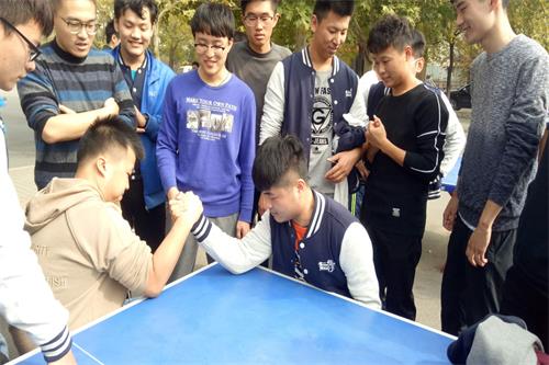 在活动正式开始前,班干部集体讨论并策划了详细的活动方案。活动当天,同学们抵达第四体育场后,在体育委员的组织下,先做了常规准备活动。活动伊始,按照事先拟好的活动方案,负责人将同学们以宿舍为单位划分为七组,并对活动规则做了详细的说明。其中,“宿舍大作战计划”共分为“篮球赛”、“掰手腕”、“定点投篮”等多个小项目,同学们以宿舍为集体,进行实力大比拼。活动种类多样,精彩纷呈,同学们都积极参与其中。在掰手腕环节,男生们个个摩拳擦掌,跃跃欲试,比赛时更是咬牙坚持,不言轻弃,不时博得一阵阵热烈的掌声。女生们也不甘示弱,羽毛球场上,两两组合,发球,瞄准击球点,挥拍,杀球,一气呵成,动作娴熟。球场上,你来我往,你攻我防,高远球和网前球地灵活切换,更为比赛增添了几许亮点。秉承着“友谊第一,比赛第二”的原则,当天,男生共进行了篮球、乒乓球、掰手腕等几项比赛。女生则进行了羽毛球、掰手腕、定点投篮等比赛。