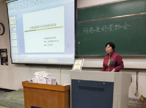 技术培训在四号教学楼205教室顺利举行,网络爱好者协会指导老师赵金玲,协会会长