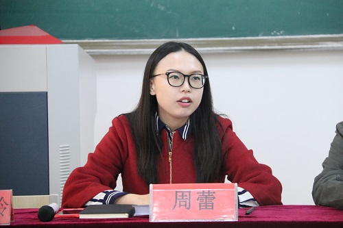 “会议初,由主持人宣布大会的顺利开始。首先是创新创业服务中心指导老师周蕾老师致辞,她以细腻的话语告诉大家要做到“真诚、踏实”在互联网+的大背景下,要去深化创新创业,让双创服务中心成为有思想有新颖头脑的组织,理想要与现实相结合的工作理念。最后致以全体成员:干一届工作,立一届口碑。”