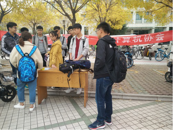 伴随着秋风,宣传活动也正式拉开了帷幕,各位社团成员在餐厅的各个门口发送传单并积极的向同学们介绍此次活动。经过了同学们的努力宣传点的桌子前终于等来了人山人海的同学们。各位社团成员向那些桌子前的同学们作认真的讲解,耐心的指导并帮他们加入群做进一步了解。同学们的热情化解了冷冽的秋风,前来报名的同学络绎不绝,大家都被这精致的宣传所深深吸引,为此激情澎湃,络绎不绝。当落叶停止盘旋,人潮渐渐退去,此次计算机协会的PC趣味比赛宣传活动也顺利告一段落。
