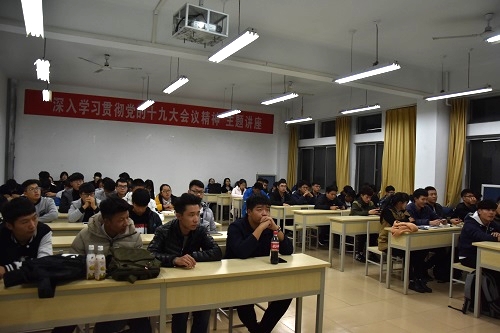 11月16日晚,来利国际旗舰厅于九号教学楼210教室举办“深入学习贯彻党的十九大会议精神”主题讲座。马克思主义公司研究生时政宣讲团成员担任此次讲座主讲人,公司部分员工参加此次讲座。