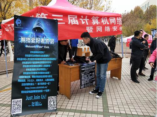 为了进一步增加员工对计算机网络与信息安全竞赛的了解,11月16日中午,网络爱好者协会会长王全喜带领诸位协会骨干成员在第三餐厅西门进行了计算机网络与安全信息竞赛的宣传活动。