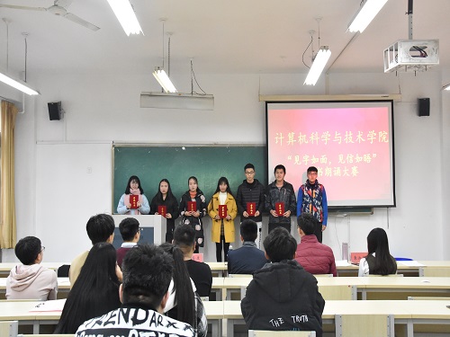 比赛伊始,相关工作人员简要说明此次比赛意义及比赛规则。随后,比赛在大家的掌声中拉开帷幕,伴随着或轻柔或激昂的伴奏,参赛选手们认真演绎着自己对于家书的情感。一封短短的家书,却承载着父母对远游子女满满的牵挂和爱意。选手们感情真挚,朗诵动人心弦。比赛规定在每五个人朗诵结束后向大家汇报成绩,最后由评委们对成绩进行综合整理并为获奖选手颁发奖状。随着时代的发展,书信在一步步退出人们的生活,同时人们也在遗忘着一些美好的东西。通过这次活动,唤醒了大家对于亲情的渴望,弘扬了“家文化”。家书虽简,写满的却是父母的牵挂,字里行间溢出对游子的思念。此次比赛,涌现出了一批优秀的朗诵者,他们用自己的声音传递着自己对于家书的深厚情感,对于亲人热烈深沉的爱,同时展现着这世上最美好也最真挚的感情。比赛一等奖的获得者为朱静茹、孙金元、薛奕兴,二等奖的获得者为谷家帅、伊静等,三等奖的获得者为刘晓云、张淼等,优秀奖的获得者为司媛媛、黄晓雯等。成绩宣布完成后,在观众热烈的掌声中此次比赛宣告结束。