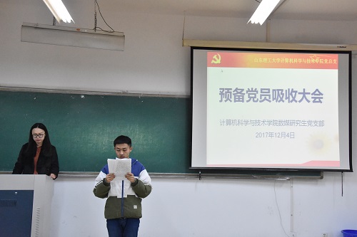 会议伊始,各员工党支部书记介绍此次会议流程,并宣读党员发展对象演讲顺序。会议流程为“党员发展对象向组织汇报申请情况”、“内部提出意见”、“评议表决与会议总结”四项内容。党员发展对象轮流上台发言,宣读志愿书内容,阐述个人在校基本情况以及自我认知,发表对党的认识和了解。随后,第一入党介绍人宣读入党介绍意见,最后第二入党介绍人发表意见。评议投票表决中,各员工党支部讨论后决定党员发展对象通过评议成为预备党员,随后各预备党员发表加入党组织的感想。最后,各员工党支部书记进行会议总结,并结合身边同学事例进行分析,提倡各党员积极了解党史,遵守党员职责,时刻关注政治,关注社会,树立正确价值观,提高判断能力,切勿相信历史虚无主义,积极宣传党的观点,对身边同学起带头模范作用。