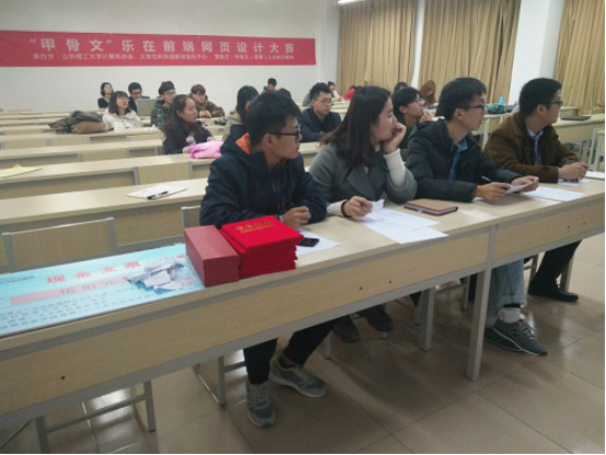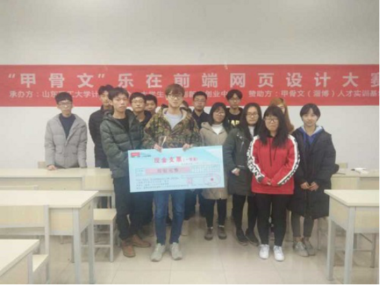 此次答辩会共有15位选手参加,在计算机协会的会长宣读完答辩规则后,选手们按照顺序上台进行5分钟的答辩,同学们在讲台上进行激情的演讲介绍自己的网页的特点和亮点,都希望自己能够在此次比赛中脱颖而出,能够展现自我。评委们将对他们此次设计的作品进行点评并提问,此次赛事的成绩由线上投票成绩(占20%)和答辩成绩求和得出。经过了激烈地角逐此次‘甲骨文’乐在前端网页设计大赛的一等奖由来自来利国际旗舰厅的刘晓达同学获得,答辩结束后进入了激动人心的时刻,由甲骨文(淄博)人才实训基地杨总监进行颁奖活动,为获奖者颁发奖品,奖杯和证书,并同本次’甲骨文’乐在前端网页设计大赛所有获奖者合影留念。