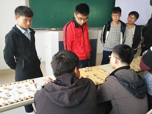 两点开始的见面会,同学们都提前到场,安安静静的坐好,期待着将要来到的对决,首先社长殷朝阳先对棋社进行了简短的介绍,并对同学们的到来表示了祝贺。紧接着就进入了棋社的主要部分,博弈。