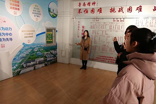 访谈结束,工作人员带领实践团参观鲁南制药集团展厅。在讲解员的解说下,实践团还了解到鲁南制药集团拥有健全的福利体系,宽松的假期制度,最大限度的为员工解决后顾之忧,让员工全身心地投入工作,这让整个公司的工作效率都得到提升。