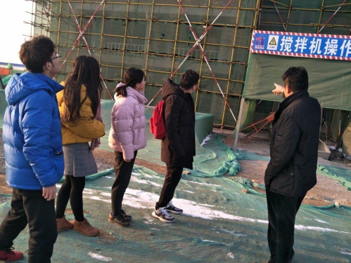 临近春节,工地已经停工,仍在工地的工作人员向来访的实践团成员详细介绍了工地施工情况及未来建筑蓝图。成员仔细聆听,并做好记录。在办公室中,公司负责人向成员们介绍了不同的户型,讲解房地产开发,销售等方面的工作,带成员们了解建筑材料等。
